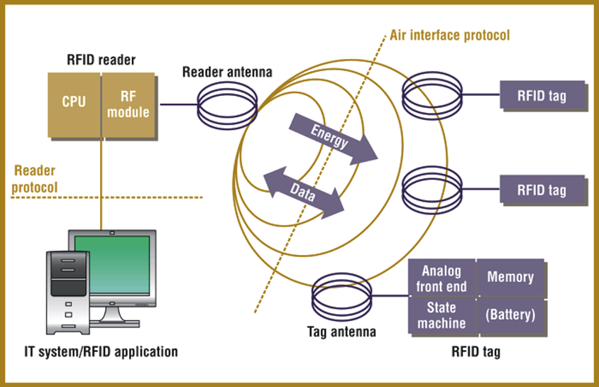 Information stored on these RFID / NFC tags can be read without contact with RFID readers from a distance.